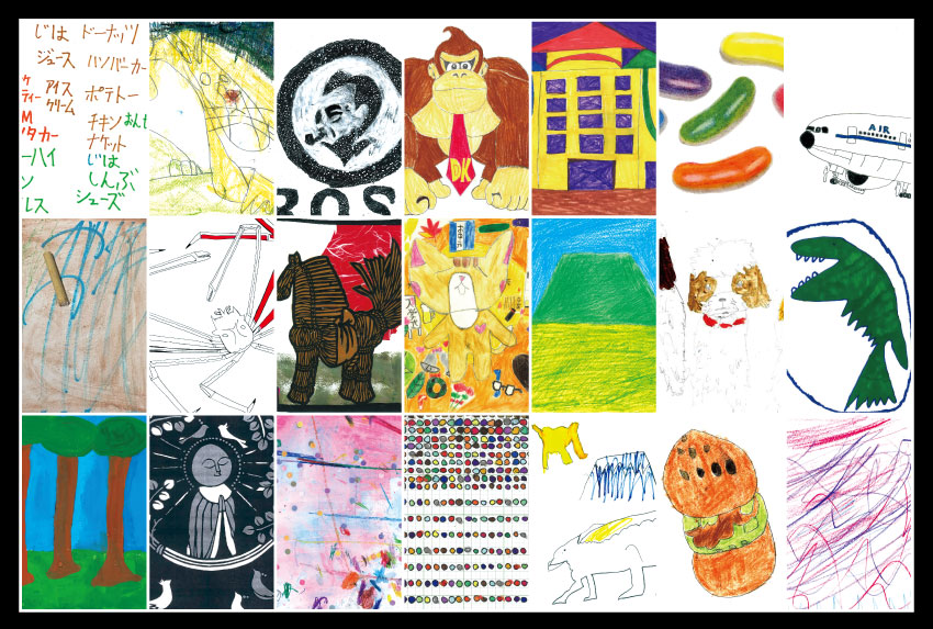 主な使用画材:水彩、アクリル絵の具、クレヨン、粘土、切り絵など